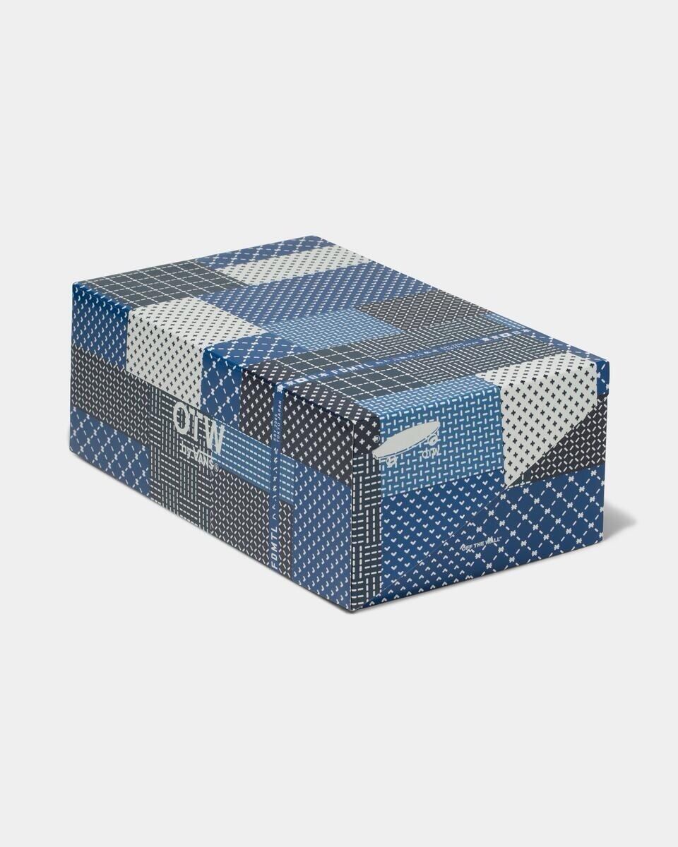6度目のタッグとなる今回は、VANSのスケートシューズより「オールドスクール(Old Skool) 36 EK」と「ハーフキャブ(Half Cab) 33 EK」の2型をベースに採用。布地を重ねて幾何学模様を刺し縫いする、⽇本の伝統的な“刺し⼦”技法にインスパイアされたデザインを、VANS独⾃の「エンジニアードニット(Engineered Knit)」テクノロジーで表現している。