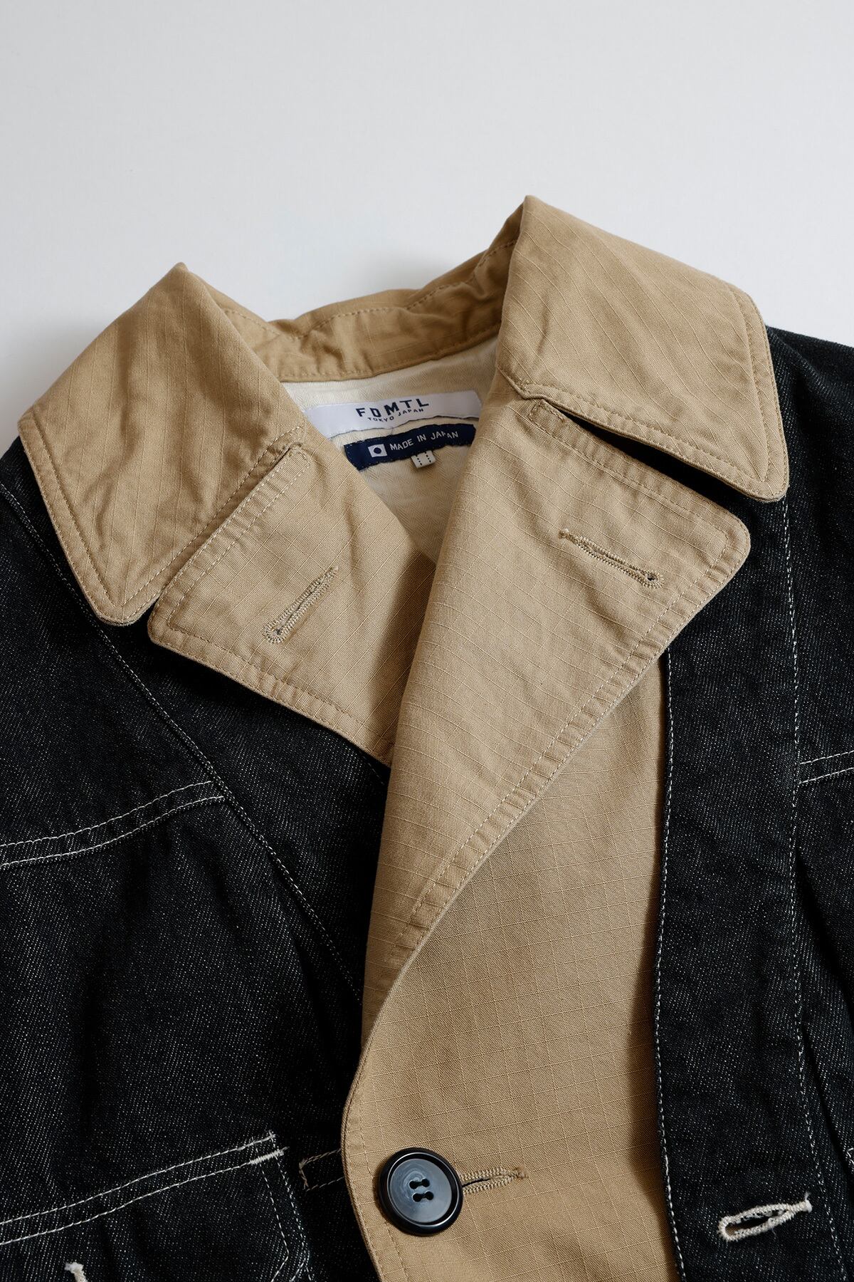 デニムジャケットとトレンチコートをドッキングさせたギミック満載のアイテム。