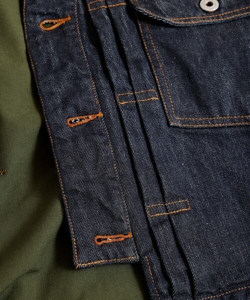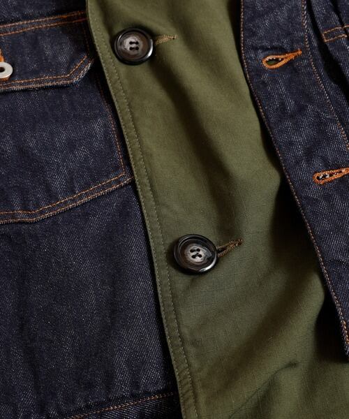 デニムジャケットとトレンチコートをドッキングさせたギミック満載のアイテム。