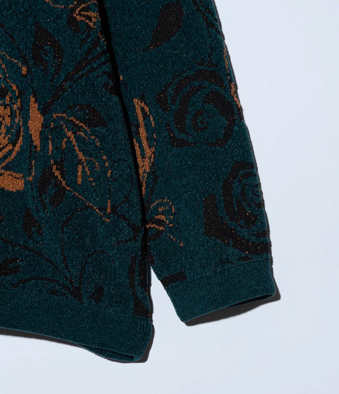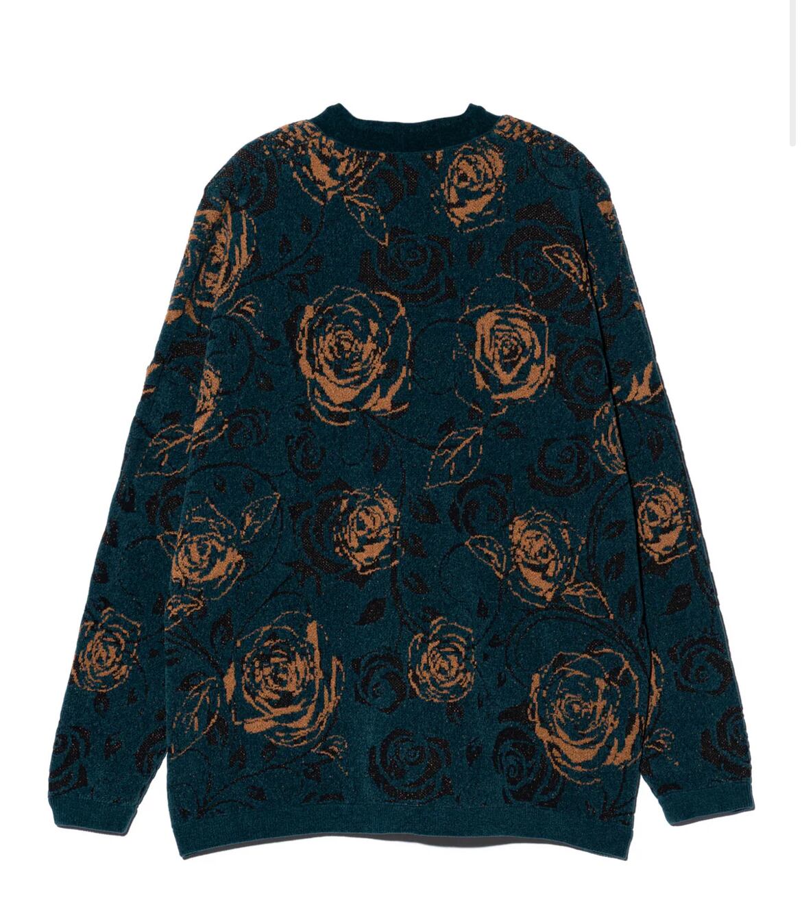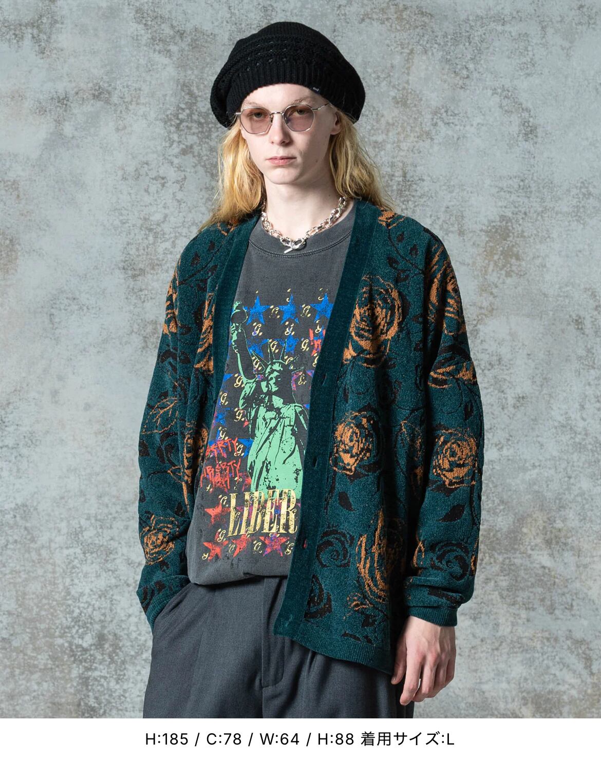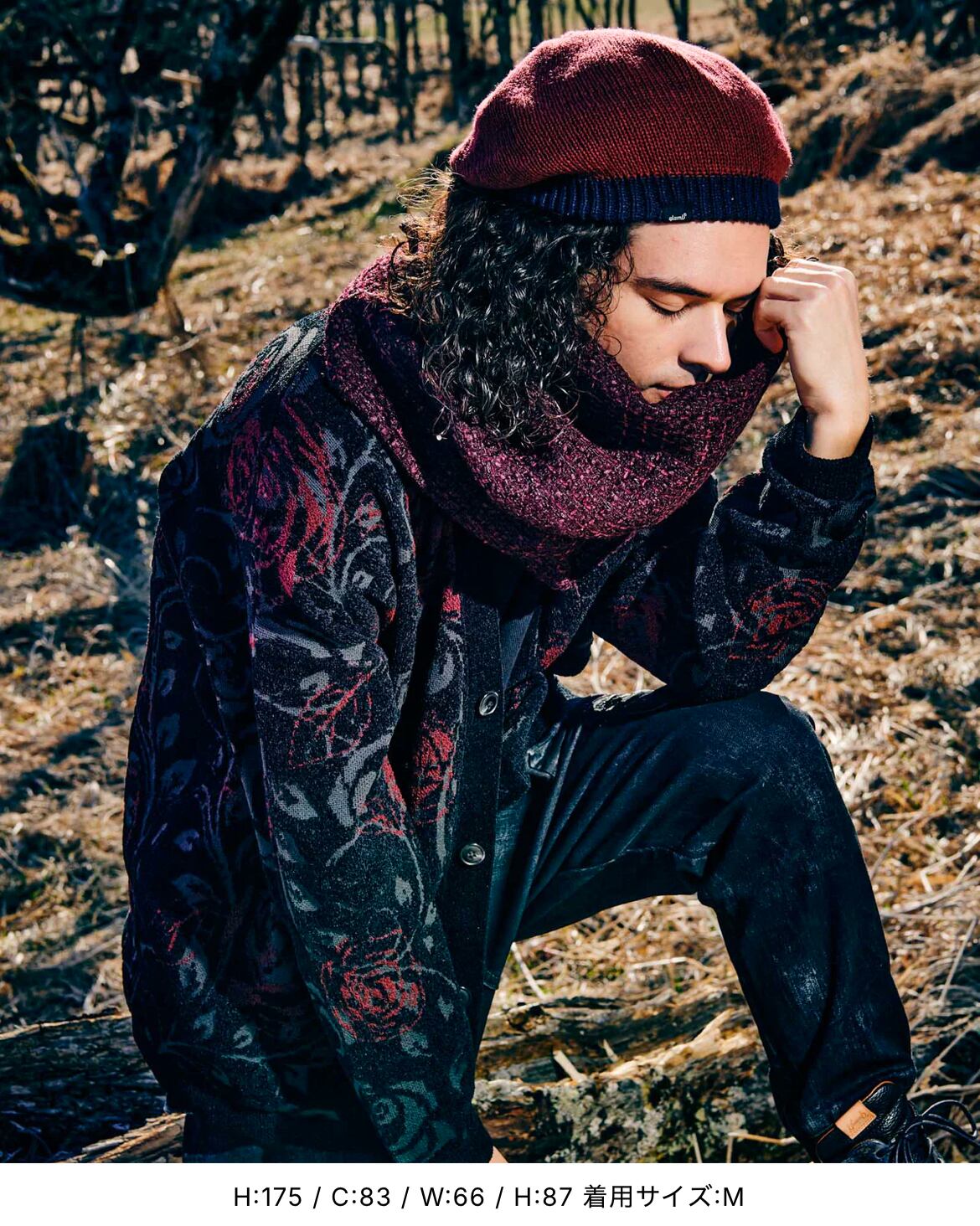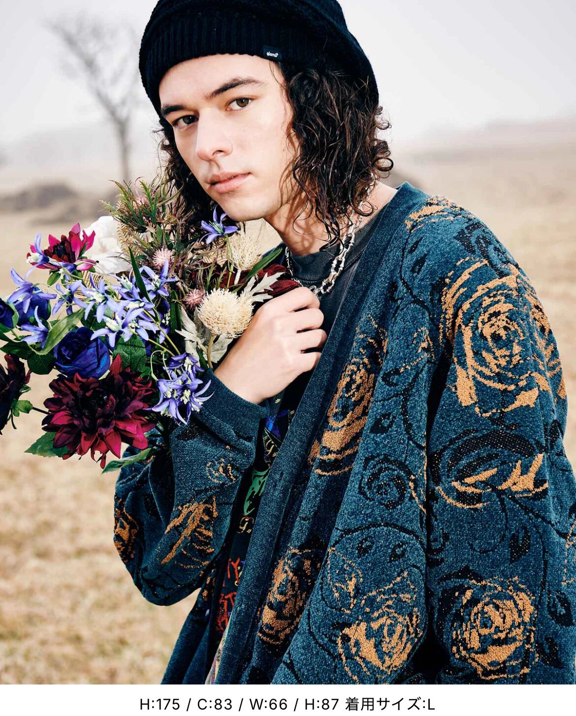 Dance in Hidden Valley”をテーマに幻想的な世界観を描くglamb、そのムードを重厚なフローラル総柄に閉じ込めたHidden Valley Cardigan。精緻な柄使いはモール糸とブークレ糸を使い分けてダブルジャカードで表現したもの。柄に合わせて凹凸をつけた奥行きあるテクスチャに仕上げられています。重厚なヴィジュアルながらガーメントは程よい中肉厚となっておりインナー使いにも絶好。ボディはオントレンドなボックスシルエットにまとめております。