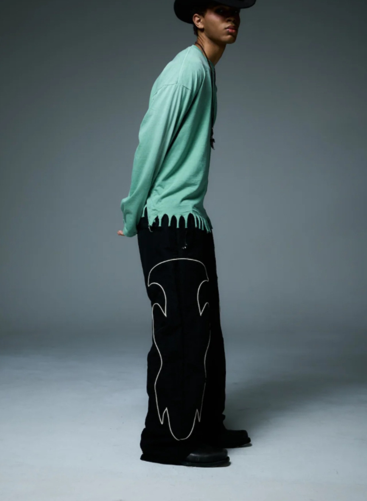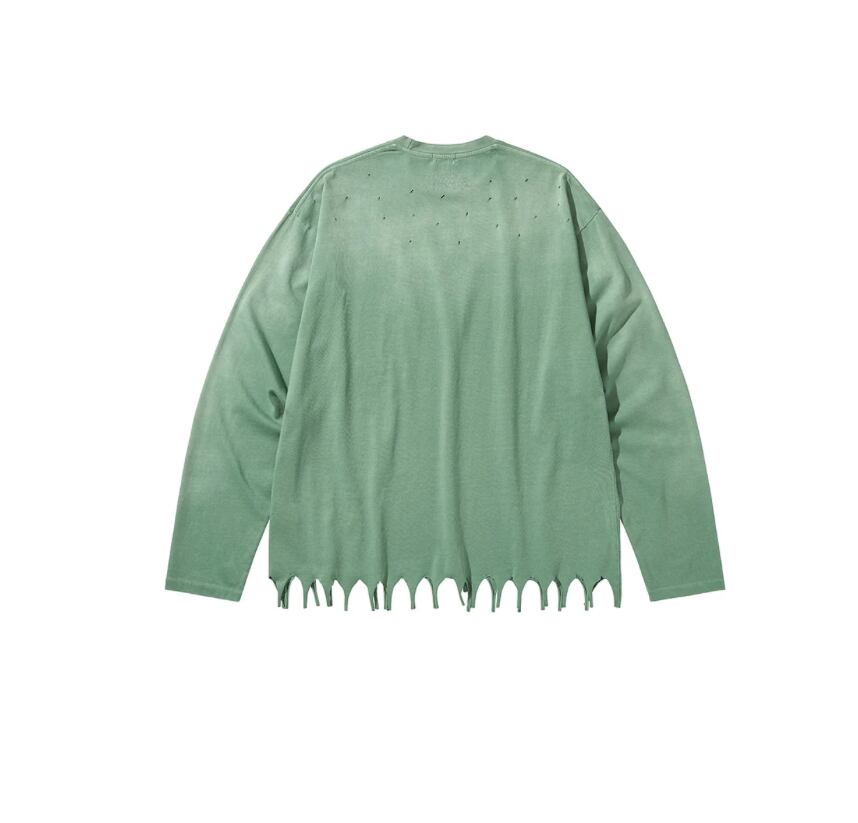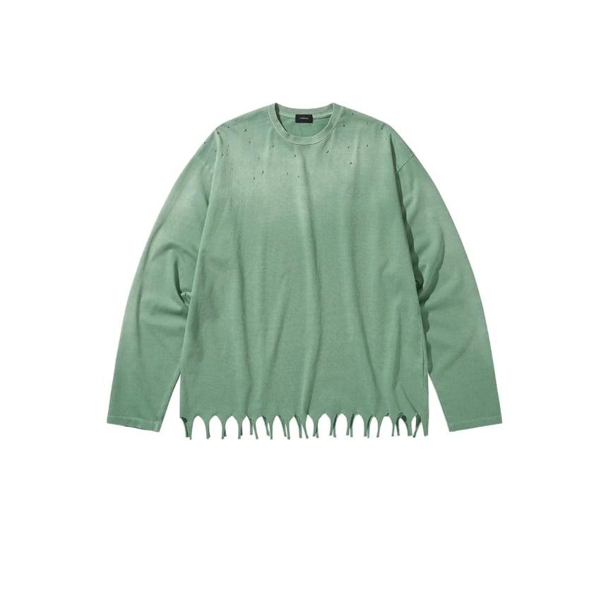 ・裾をフリンジ加工したロングスリーブTシャツ