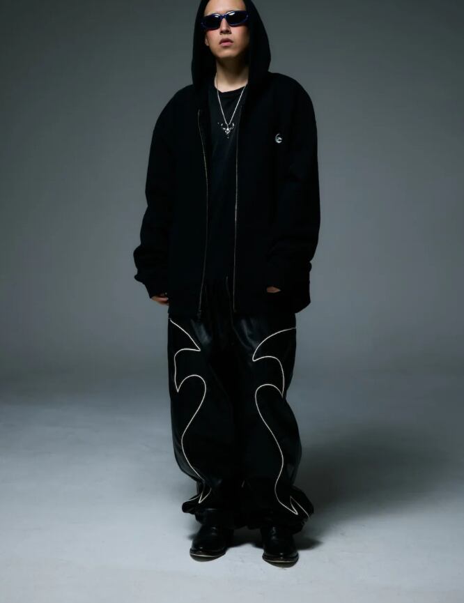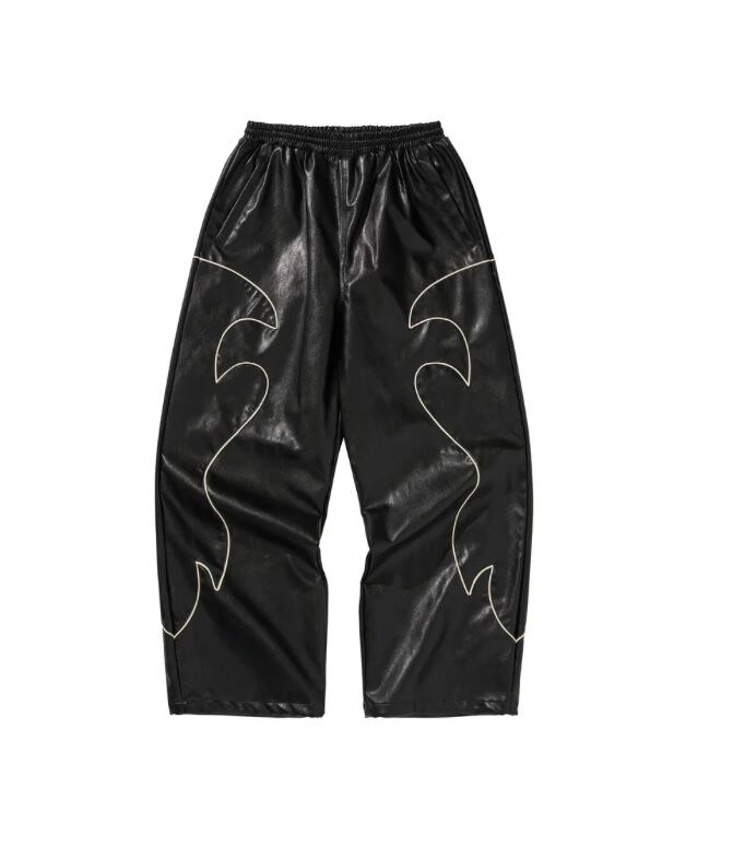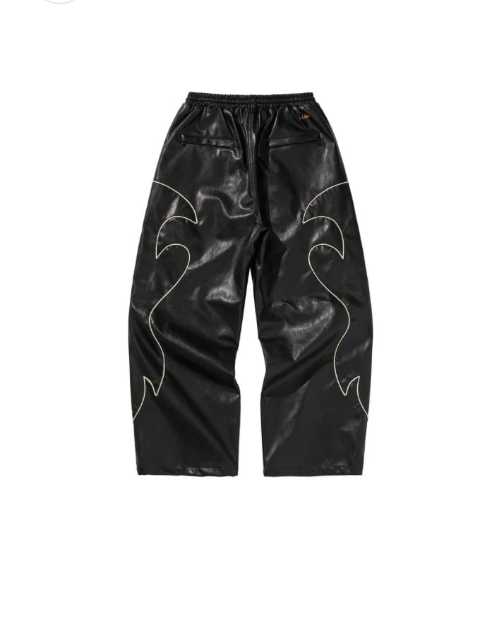 【LIBERE】WESTERN FLAME LEATHER TRACK PANTS / BLACK