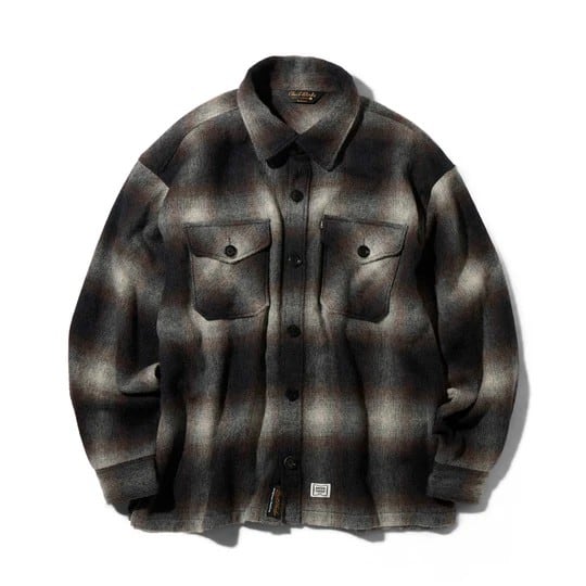 大きめのオリジナルのボタンや落ち着いた色合いのチェック柄を採用しており、様々なボトムに合わせやすいアイテム。ウール混合生地を使用している為、冬のシャツとして申し分ない暖かさです。ゆったりしたシルエットなので中に着込めてシャツジャケットのような感覚でお勧めいたします。