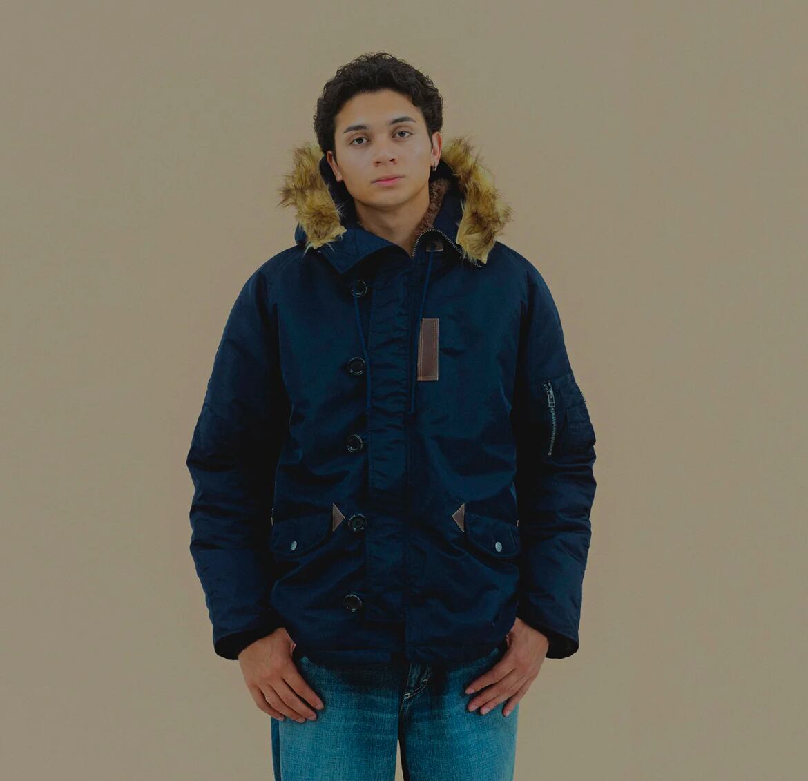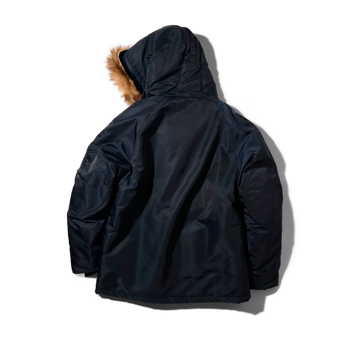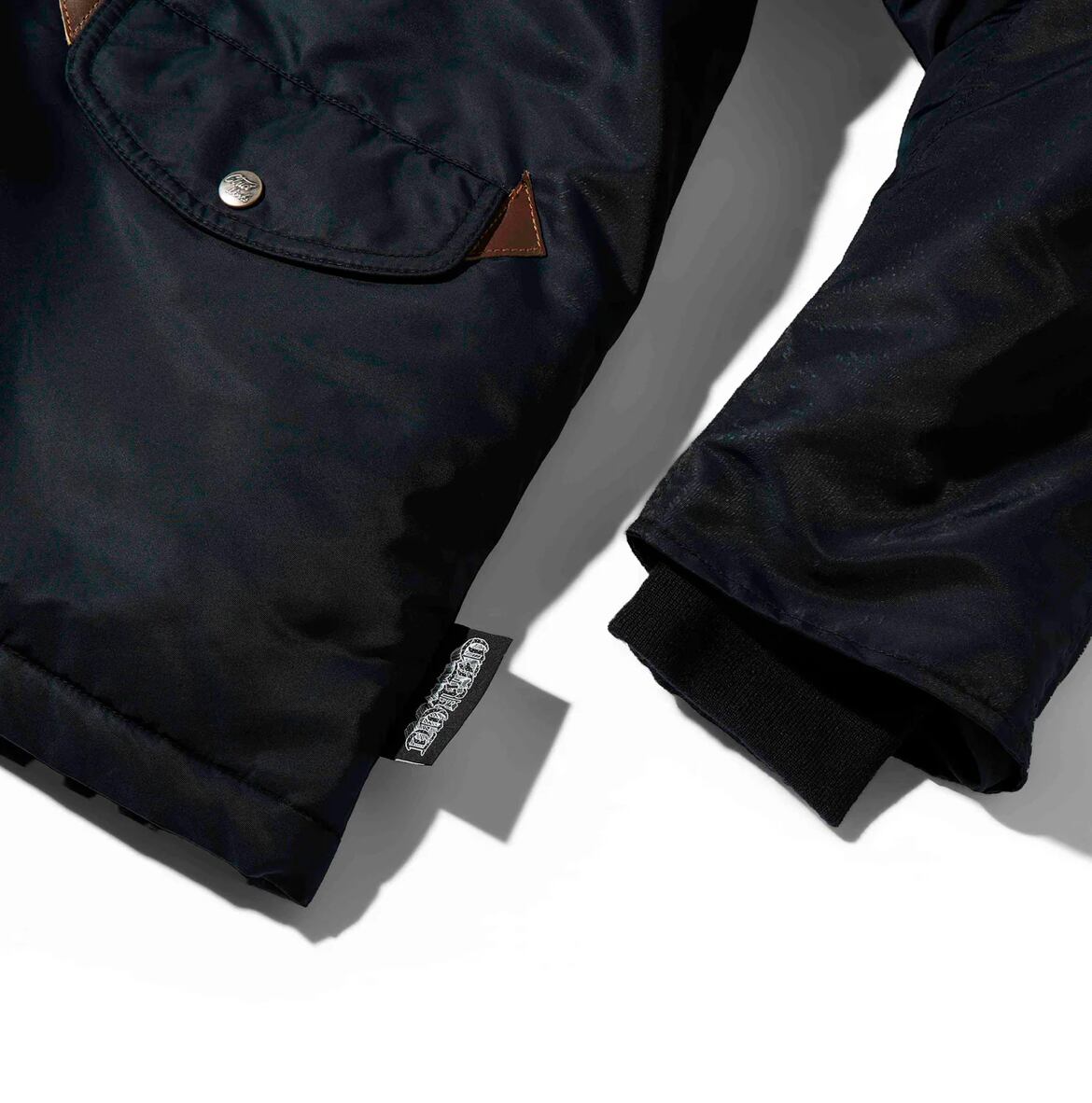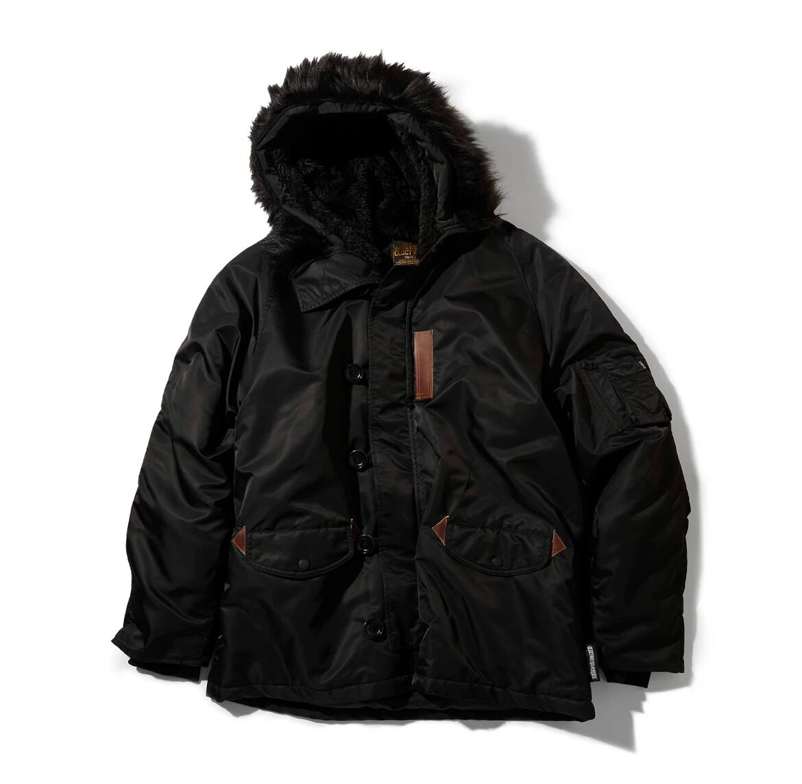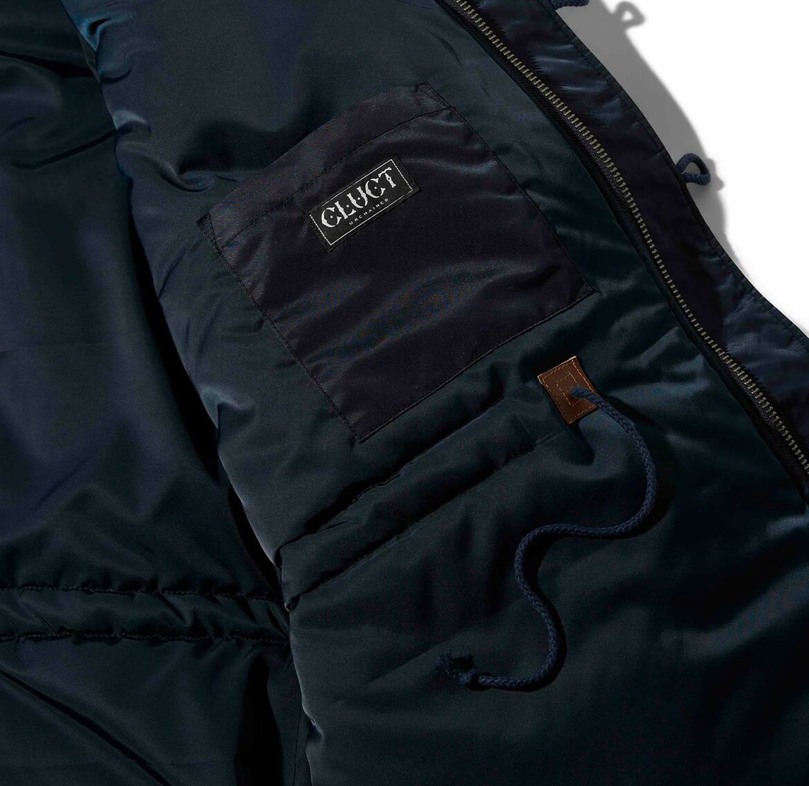 タウンユース向けに細部を再構築した真冬のメインアウターです。保温性を高める中綿入り。フロントは、ジップ開閉に加えて風防フラップ付き。後ろ前立てとのさらなる組み合わせで風雪の侵入を防ぎつつ、ジップへの雪の固着も防止する。ウエスト内部にはドローコードが配され、裾からの風雪の侵入を防ぐ。加えてフード内にもボアが配されている。