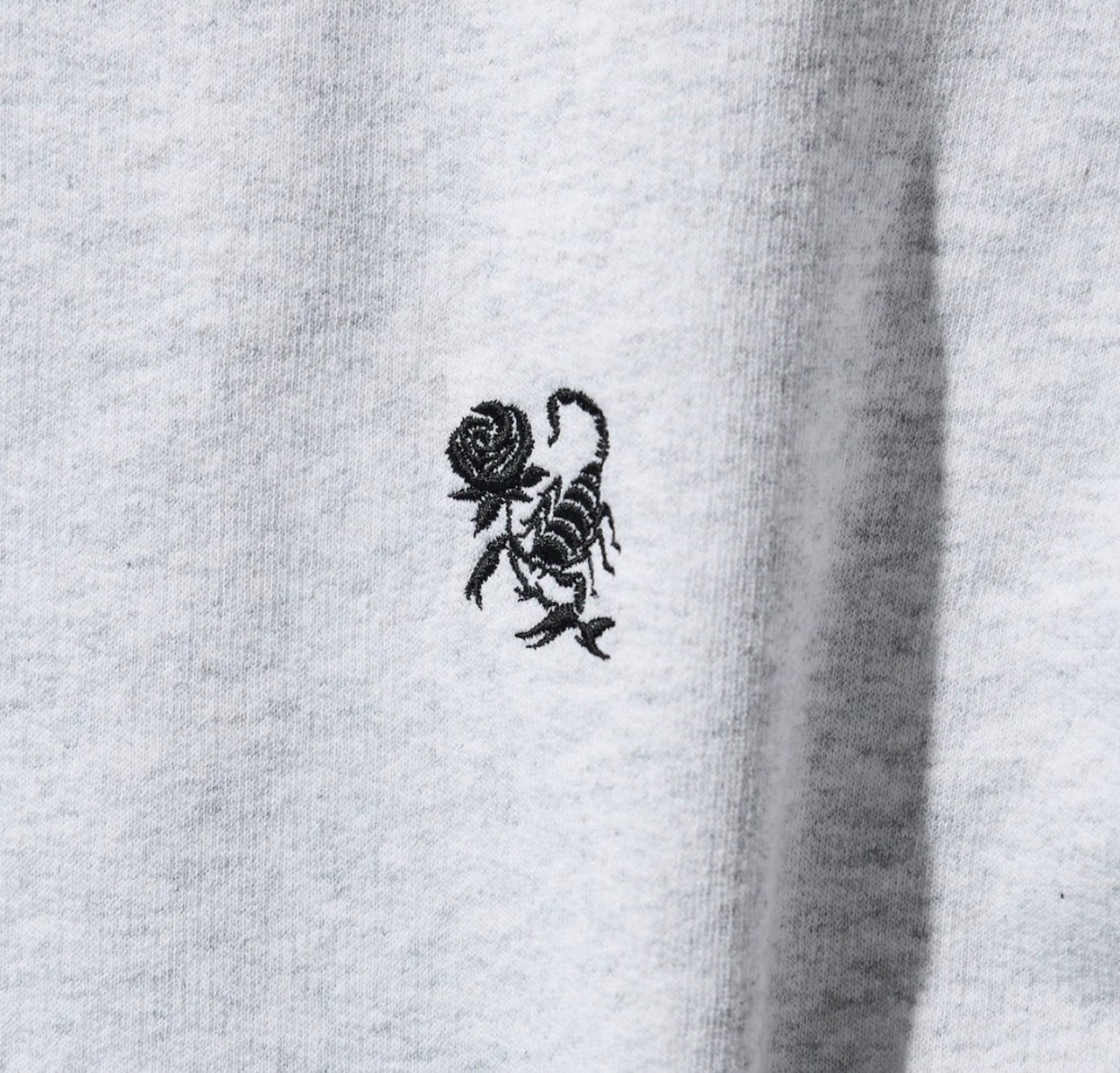 今回のためにデザインされたボディは裏起毛・サイドパネル・Vガゼットの特別仕様を採用したオリジナルボディ。シルエットは肩幅、身幅、アームホールにゆとりのある現代風に再解釈したワイドなフィット感に仕上げています。両胸と右腕に両者のブランドロゴをボディと同系色の刺繍で施して、左下にはブランドロゴを並べたパッチのほかサイドシームにピスネームが付属した、クルーネックスウェット、プルオーバーフーディーがラインナップ。注目のダブルネームです。