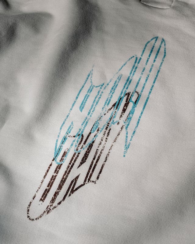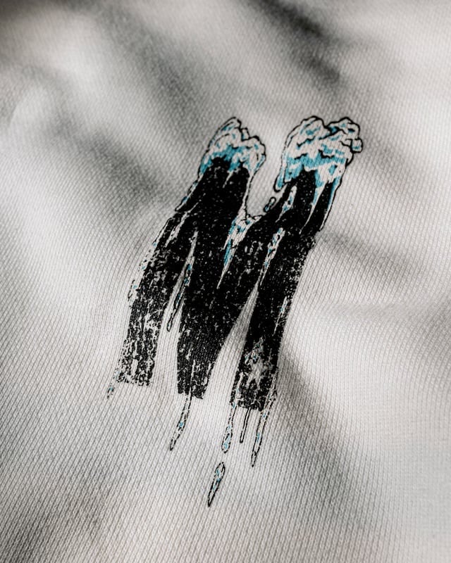 一番ベストなショート丈に設定し、M 17周年のイメージをグラフィックに落とし込み、日本人の平均身長170cmを軸に、低身長から高身長まで、自然にバランスが取れるパターンへと落とし込んだ、short length sweat shirts(M 17th Anniversary)。