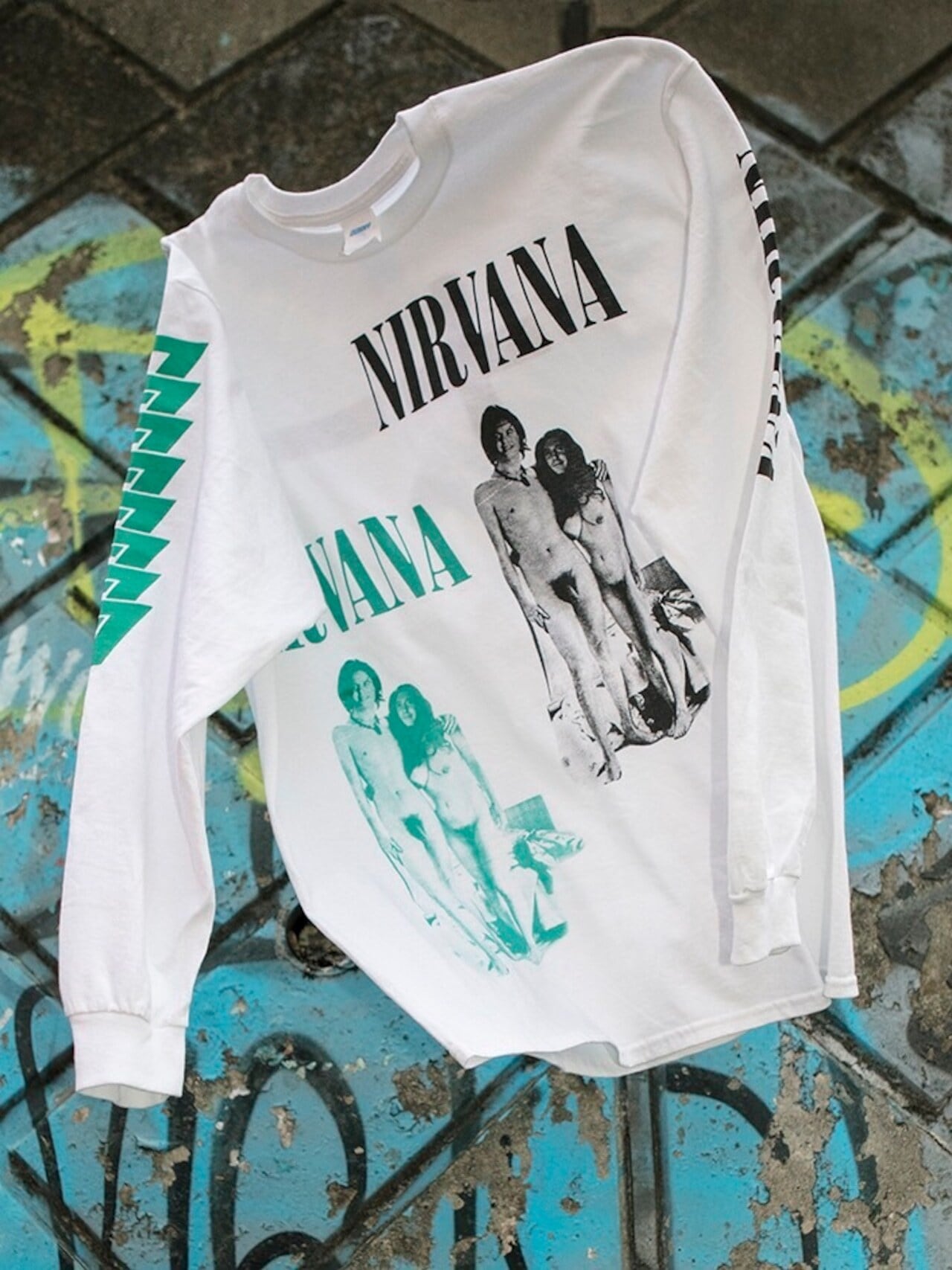 US×Jeff Ross×DUMMY NIRVANA hand print l/s T-shirts(JHON&YOKO)