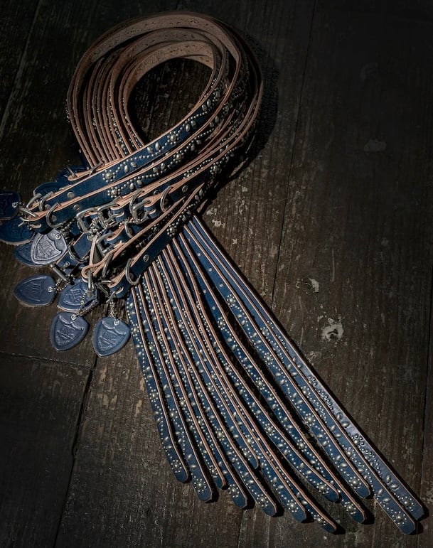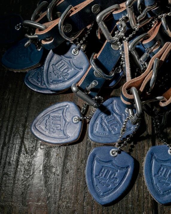 レザーカラーは展開のないネイビーでオーダーし、スタッズはすべてシルバーカラーで仕上げた