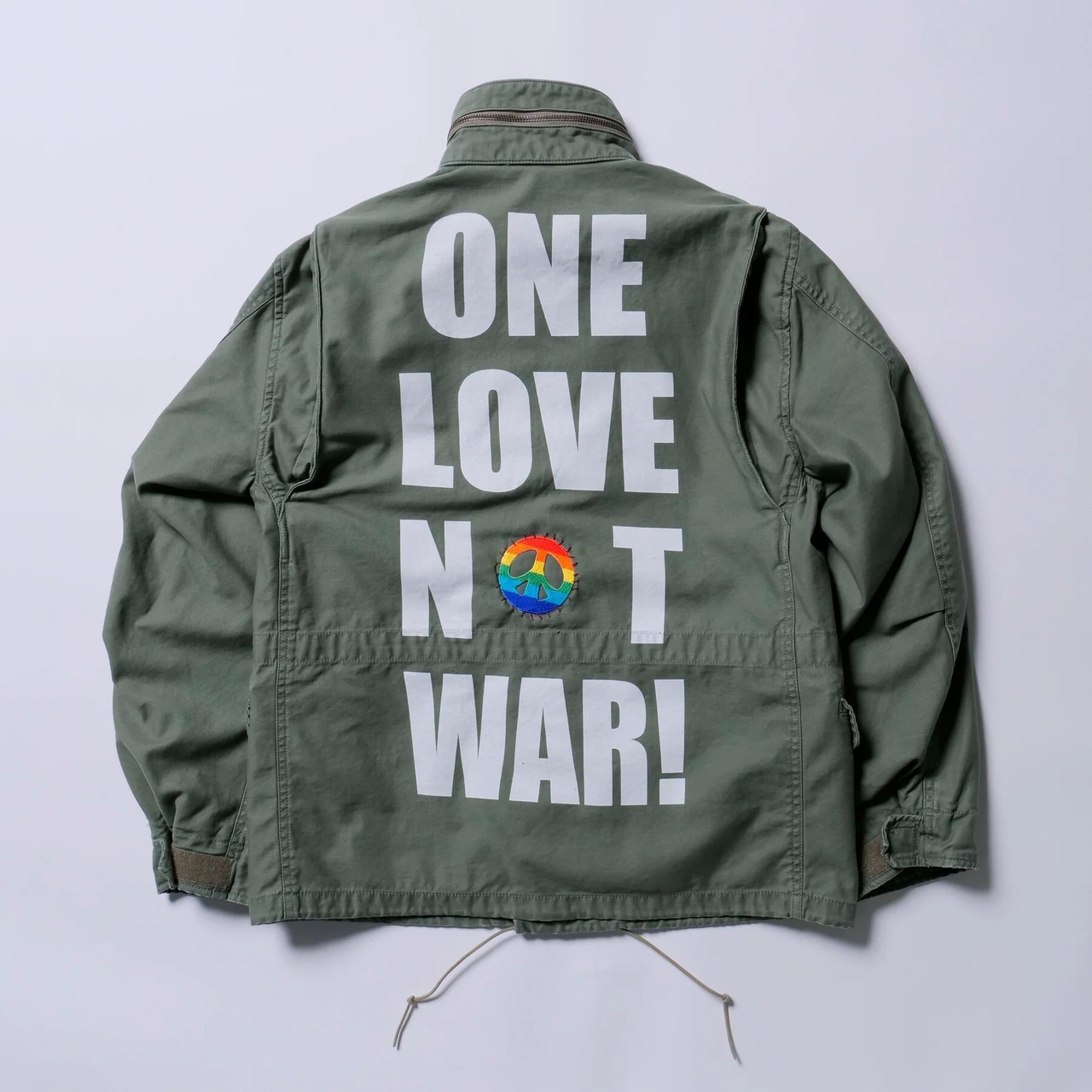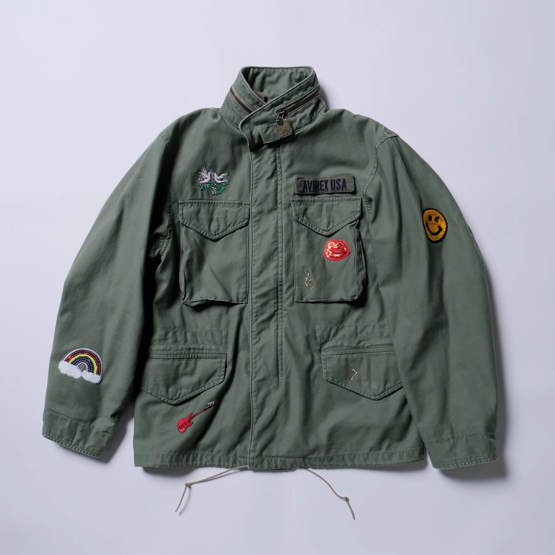 M-65タイプのフィールドジャケットに、ウッドストックを連想させるイメージをワッペン+プリントで表現しました。