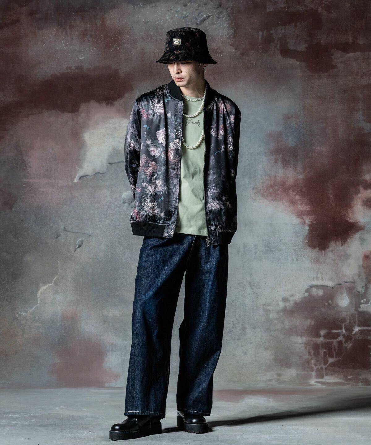 “Letter From Eden”をコレクションテーマに掲げる今季のglambの世界観をボディの全面に描き出したEden Blouson。暗闇の中に浮かび上がる幾種もの花々を描いた今季のシーズン柄を光沢生地にプリントして総柄使い、リリカルな佇まいにまとめました。身頃のジップはスタイリングの幅を広げるWジップ仕様。シルエットはストリートフレンドリーなオーバーサイズとなっております。