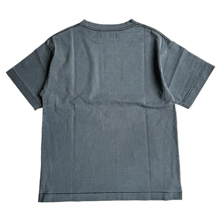 日本国内でも編みたてが難しくなってきている希少な改造織機で生地にしております。よく見かける40双糸天竺は40番手の糸を2本撚り合わせて編み上げられています。単糸よりも型崩れしにくい天竺が2本双糸天竺で世界的にも永く愛用される1番丈夫な手法です。40/3番手は40双糸よりも更に1本多い40番手を3本撚り合わせた糸を使用ているので、厚みを表現できます。3子の糸は生地自体の強度もあり型崩れがしにくくタフさを感じられる素材です。永く使用していくと縮みやヨレが出てしまうコットンのデメリットを大幅に改善した構造です。平編み(メリヤス編み)の表情とざっくり感をお楽しみ頂けます。