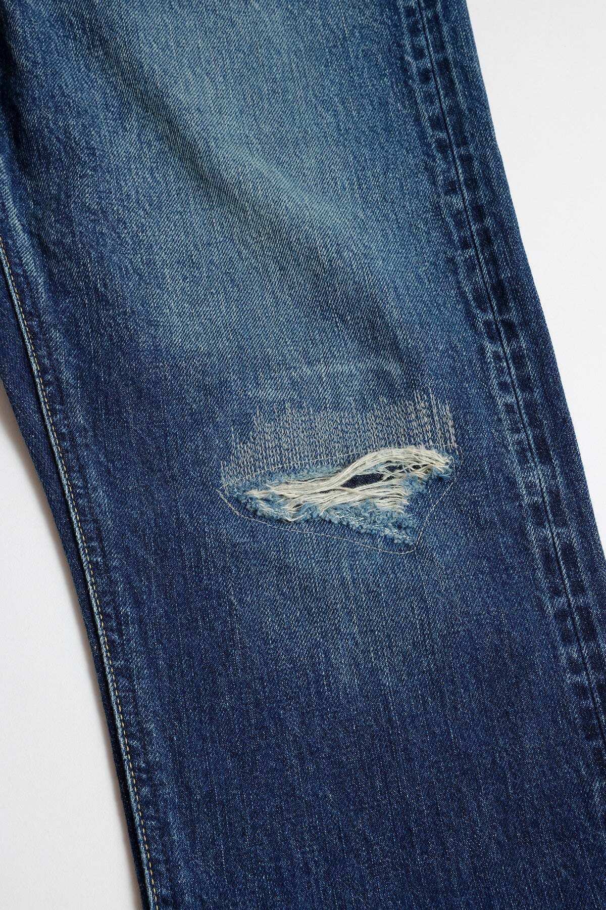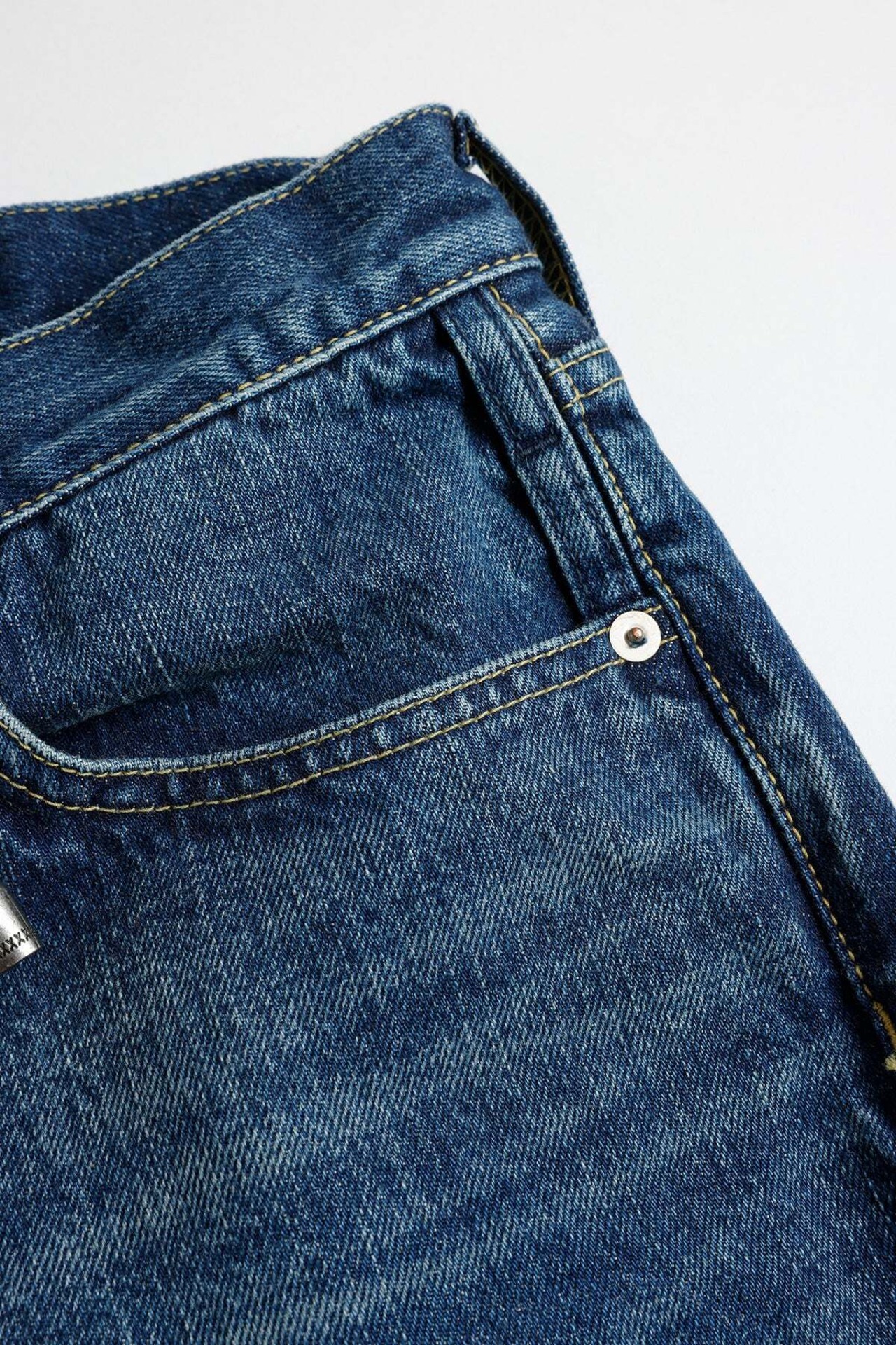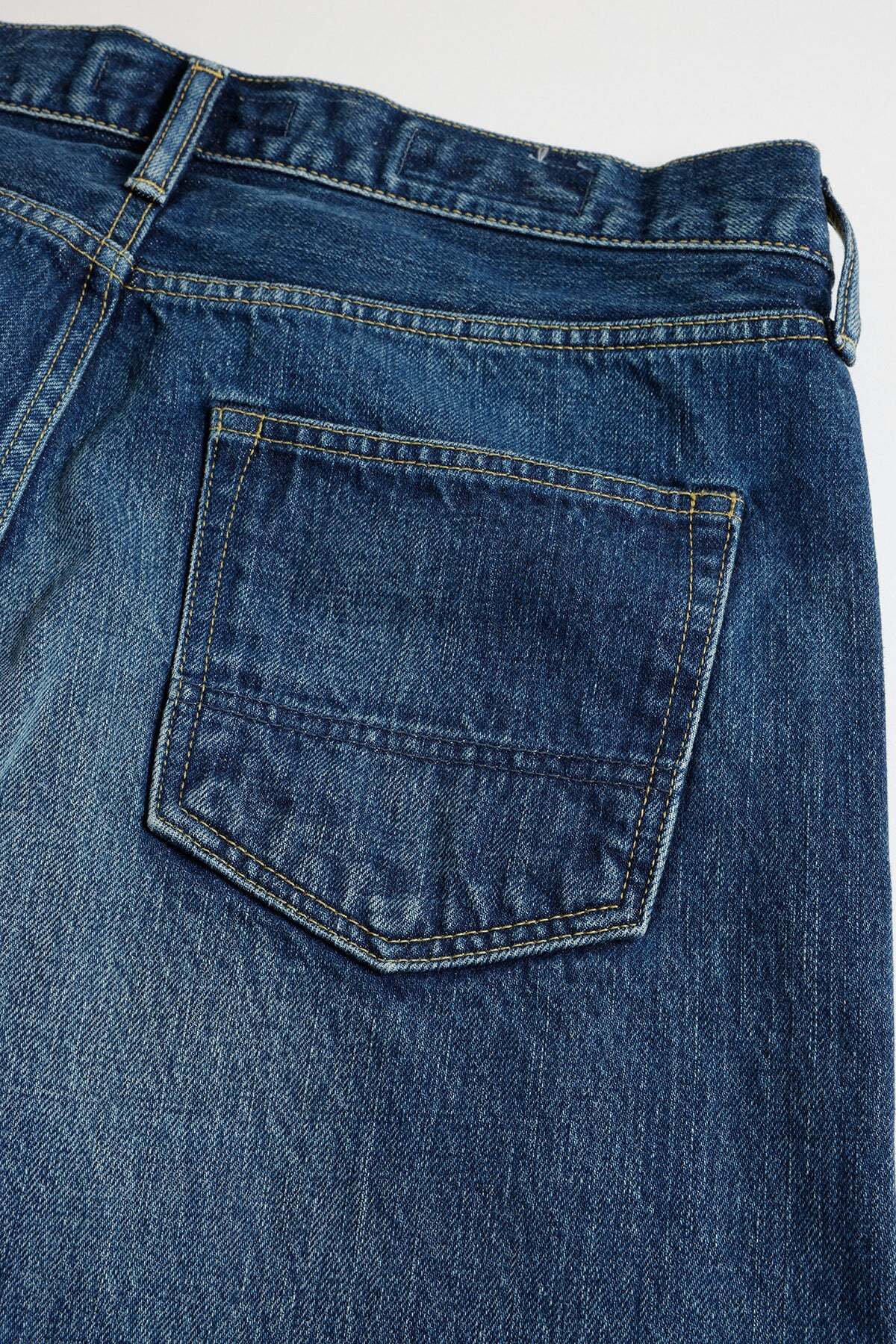 裾に向けてテーパードさせた細身のラインと、快適な履き心地を両立させたスリムフィット。奥行きのある色落ちの楽しめる赤耳デニムを用い、ヴィンテージデニムならではのディティールを搭載しながらも、縫製糸にはポリエステル芯の周りに綿糸を巻きつけた強度の高い糸を採用し、フロントをファスナー仕様にするなど、現代版にアップデートしています。