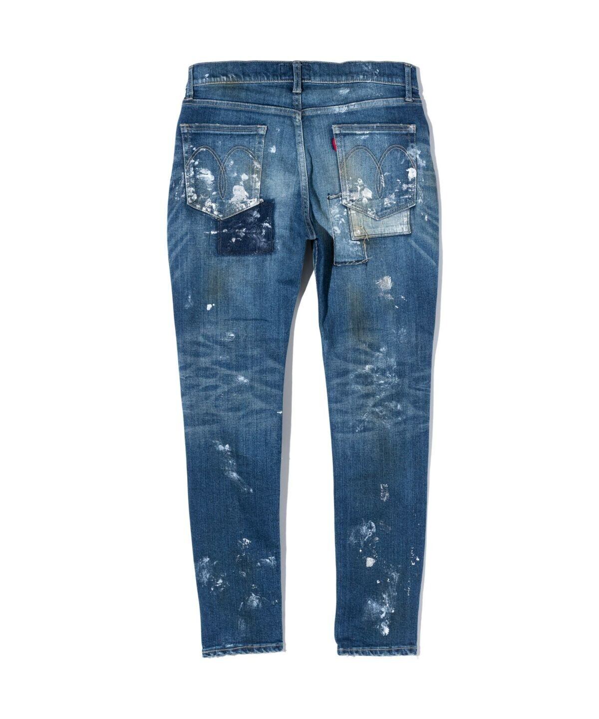 glambのブランドアイデンティティの一つであるデニムクラフトが一層の進化を遂げて今季再登場となるSilver Coat Unplugged Denim。グランジテイストを強く感じさせるパッチワークは、身生地の表に加え裏からも当て布を施した三層のクラフトで形作ったもの。ボディは熟練の職人が手作業によって削りと洗いを加え、経年変化の佇まいを演出しています。今季そこへ新たな光を投げかけるのは銀箔加工。溶剤を生地に塗り込んで一度乾燥させ、そこに銀箔をプレス。冷却後剥がすことで美しいバランスに銀箔を残すという、熟練の職人だけが持ちうる感覚で散りばめられたそれはラギッドなボディの中にジュエリー的な質感を加えます。シルエットはフットラインに吸いつく輪郭を形作るスキニーフィッティング。テキスタイルは運動性を考慮したストレッチデニム使いとなっております。
