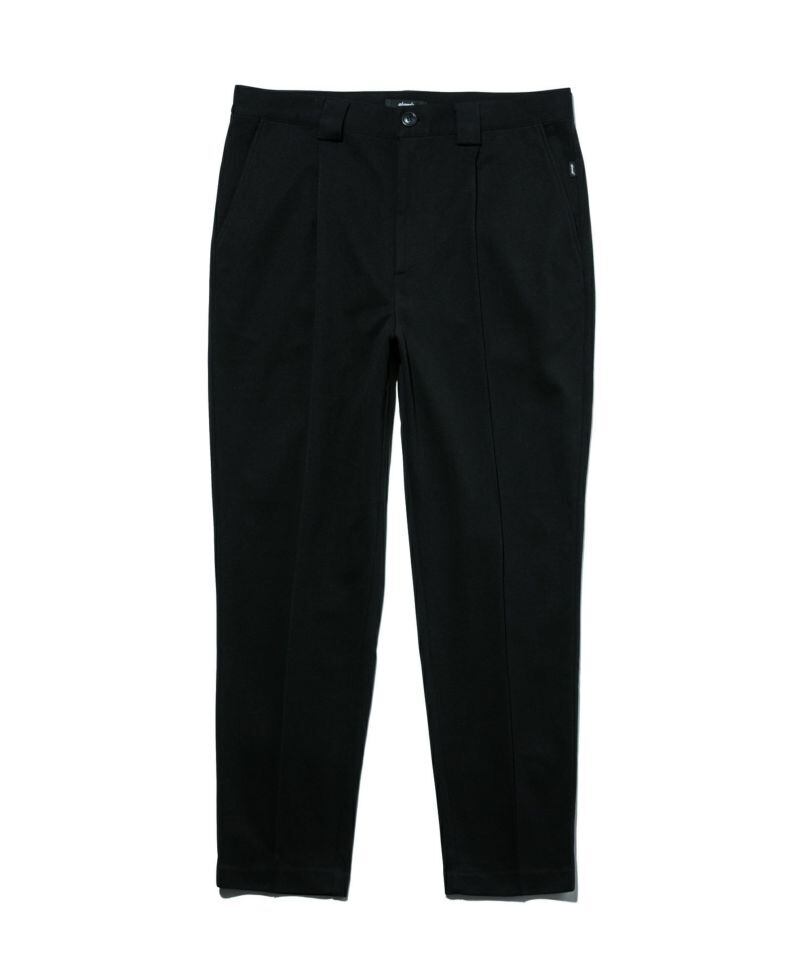 ドレッシーでありながらイージー、大人のスタイリングに絶好の1本となるEasy Slacks。シルエットはスラックスのパターンを使用した上品なテーパード仕立てながら、スウェット生地を落とし込むことでリラックスした着用感にまとめました。スウェット素材は織り皺が伸びてしまうためセンタープリーツを設けることができないところ、本作では同じ位置にピンタックをあしらうことでプリーツに代用。アイロンなどの手入れ不要で着用できるのもドレスとイージーをミックスするこちらの1本に相応しい仕様となっています。