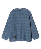 ローゲージニットにメタリックな質感をかけ合わせ、ロックとイージーを一体にしたGlitter Openwork Knit。オーバーサイズのボディは全体を透かし編みで仕上げた抜け感あるテクスチャ。編み糸にラメ糸を用いてグラマラスなエッセンスをさりげなく添えました。パンクやグランジのファッションアイコンたちが行った洋服の裏面着用へのオマージュを込め、アームホールや肩のラインは縫い代を表使い。素材とディテールの双方に込められたロックな遊び心が、アダルトなスプリングスタイルを形作ります。